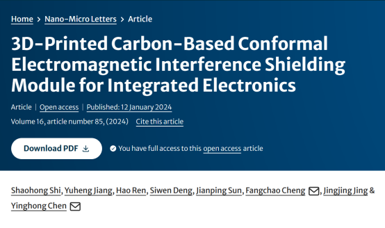 近期,我院程芳超老师团队在碳基电磁屏蔽模组的3D打印先进制造领域取得重要进展,研究成果以“3D-Printed Carbon-Based Conformal Electromagnetic Interference Shielding Module for Integrated Electronics”为题,发表在SCI收录期刊《Nano-Micro Letters》(中科院1区,IF =26.6)上。论文通讯作者为午夜无码视频韩国中国程芳超副教授和四川大学陈英红教授,第一作者为午夜无码视频韩国中国石绍宏助理教授,午夜无码视频韩国中国为第一完成单位。该研究工作得到国家自然科学基金项目(52303036)、广西自然科学基金项目(2020GXNSFAA297028)、四川省自然科学基金(2023NSFSC0986)等项目支持。