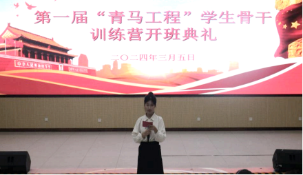开班典礼在激昂的国歌声中拉开帷幕。随后,学院团委副书记(学生)刘钰婷作为学员代表进行发言。她表示,“青马工程”训练营旨在加强党的政治理论宣传,帮助同学坚定理想信念、提升社会实践力。她号召,学员们要端正学习态度,充分利用好此次机会夯实理论基础,提升综合能力,努力成为社会主义建设的可靠接班人。